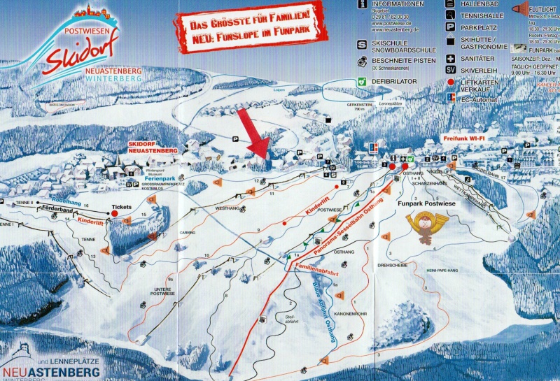 Fussläufig erreichen Sie das Skigebiet vom Skidorf Neuastenberg mit blauen, roten und schwarzen Pisten, Funpark, Rodelbahn, Skiverleih, Skischule und Schirmbar!