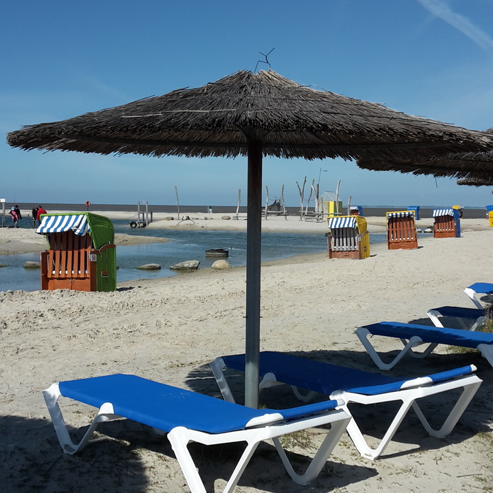 Die wohl schönste Badewanne an der Nordsee. Mit Sprungkissen, Wasserfontänen, SUP, Kanus, Tretbooten und tollem Wasserspielplatz. Strandkörben, Sonnenliegen und Sonnenschirmen...